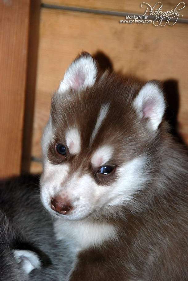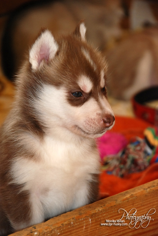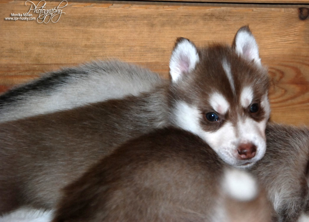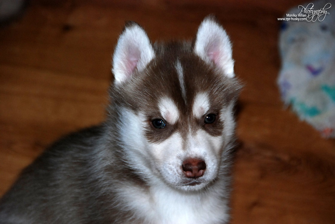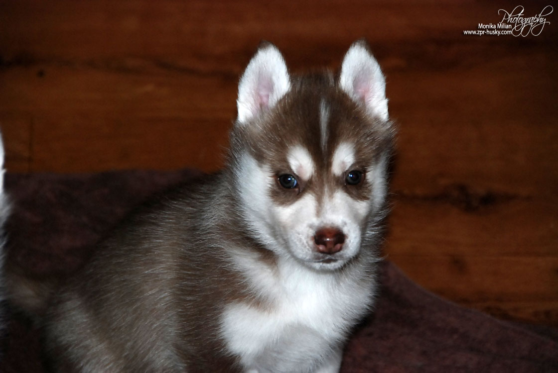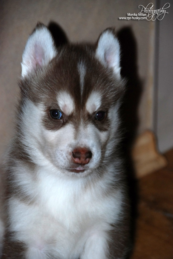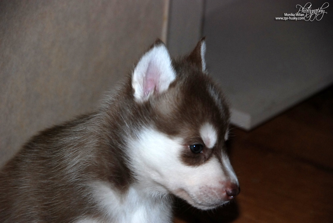 Suczka brązowo-biała / Brown and white female oczy ciemne / dark eyes