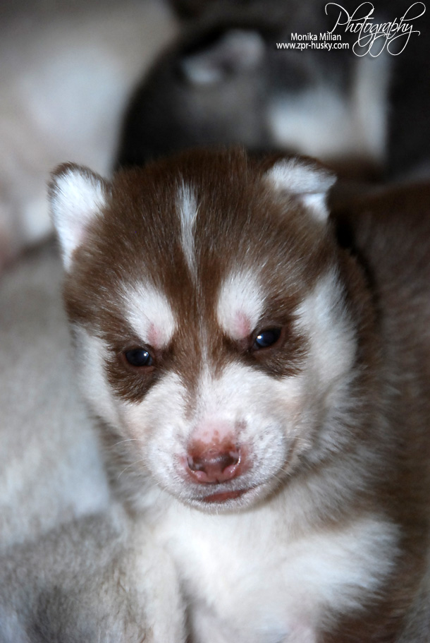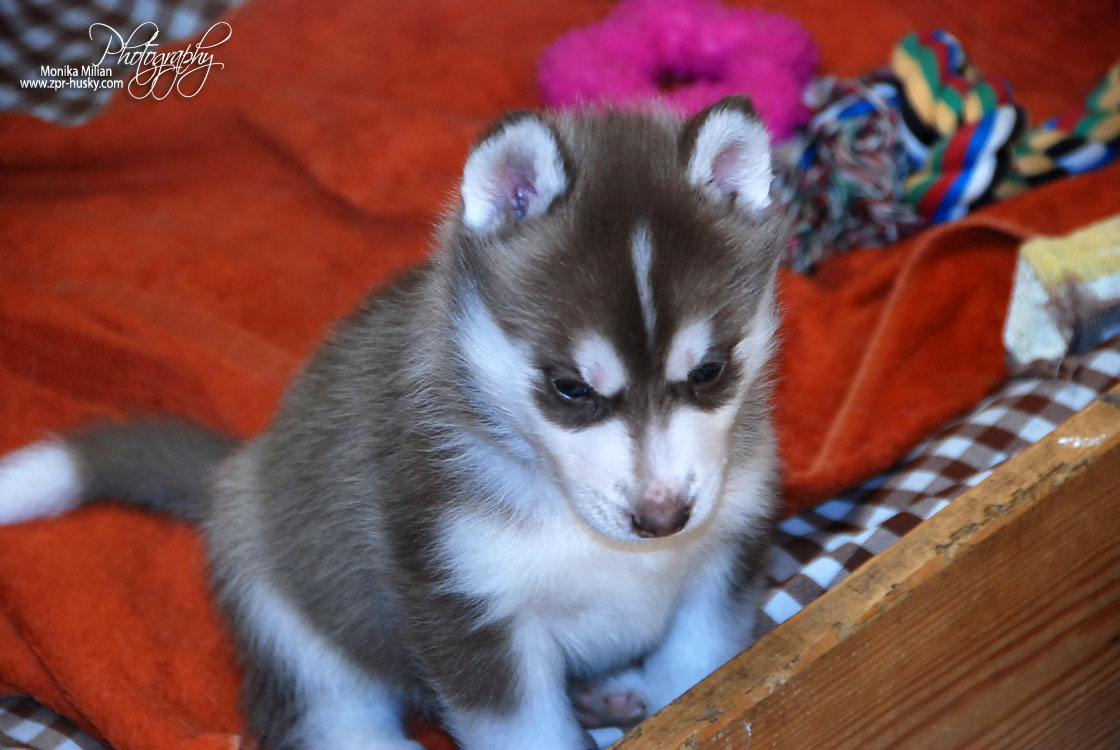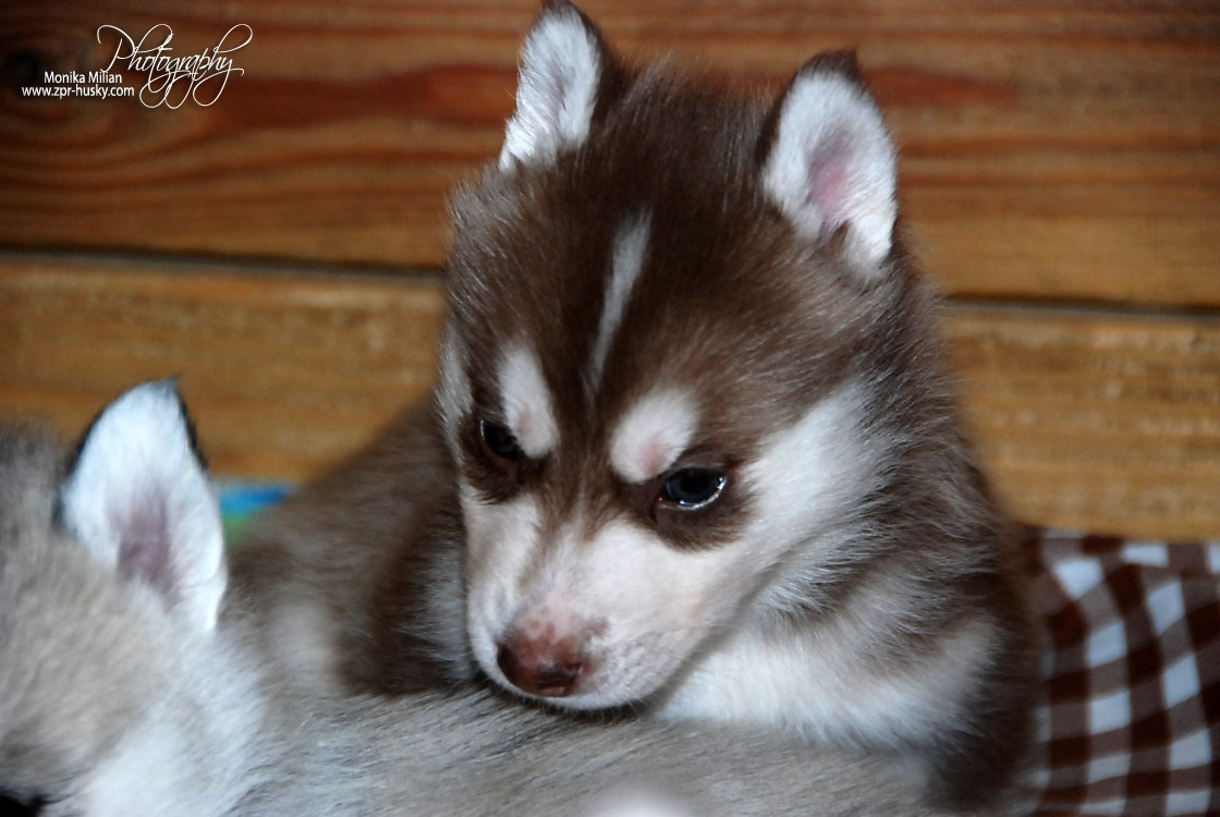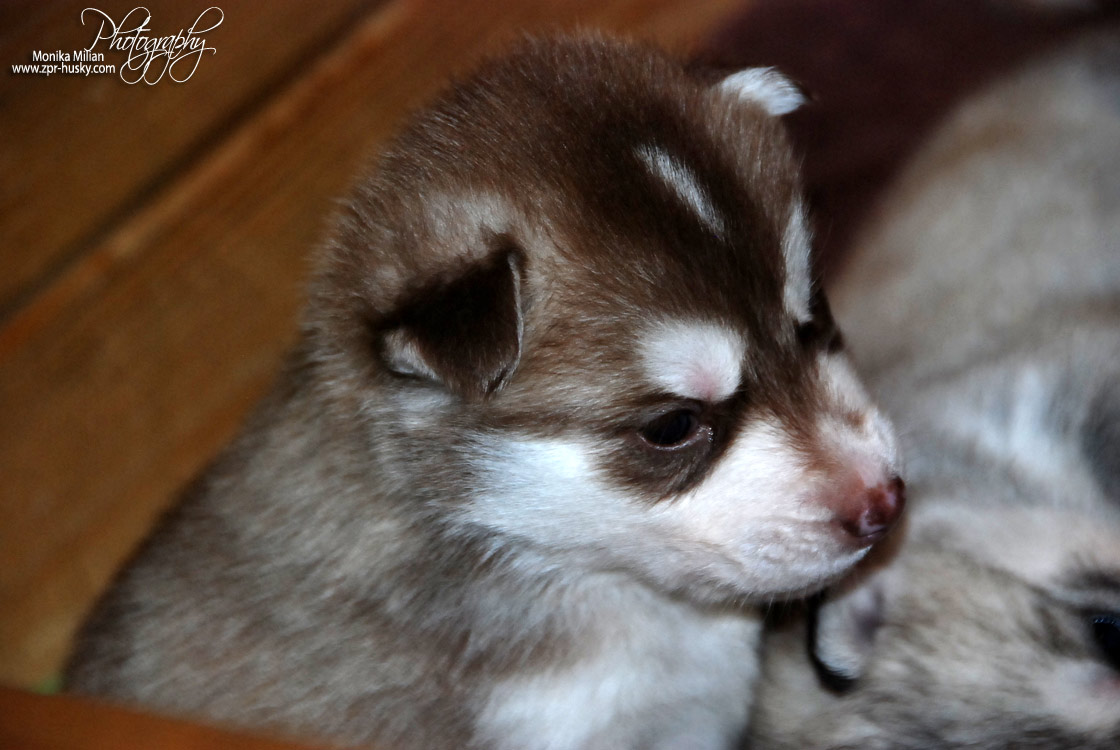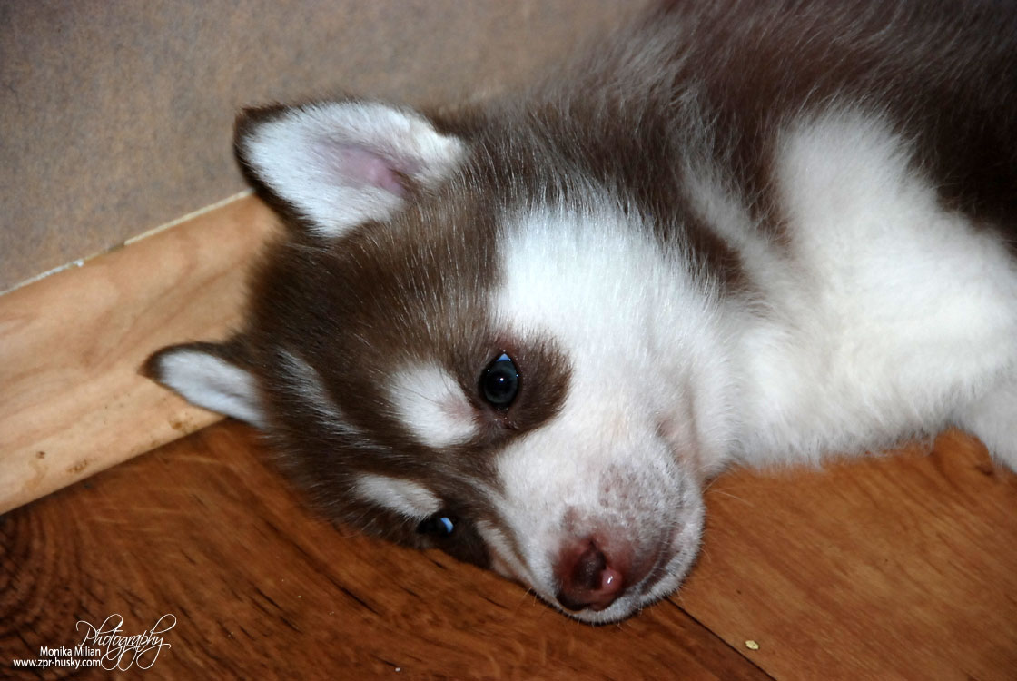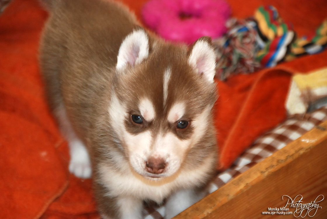 Suczka brązowo-biała / Brown and white female oczy ciemne / dark eyes