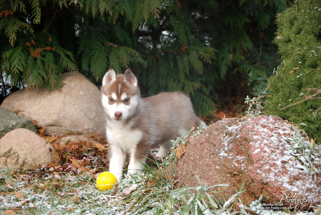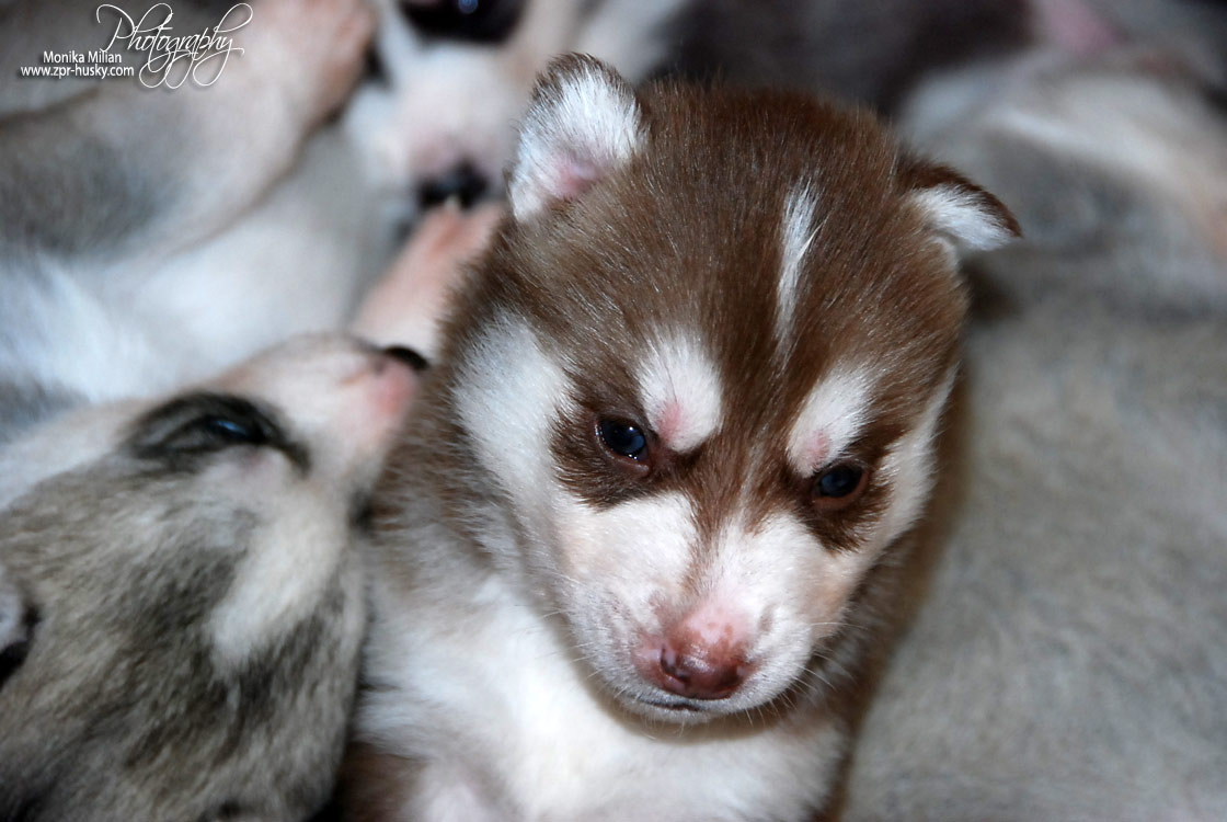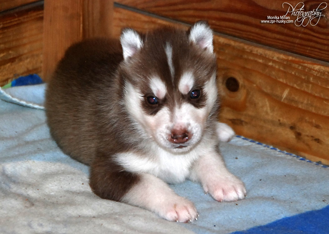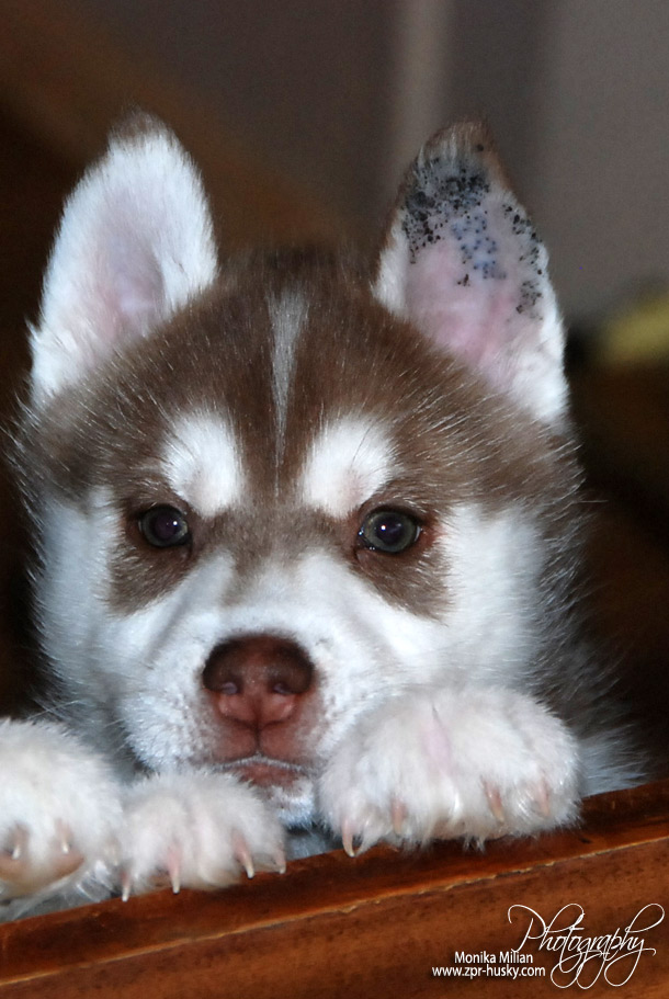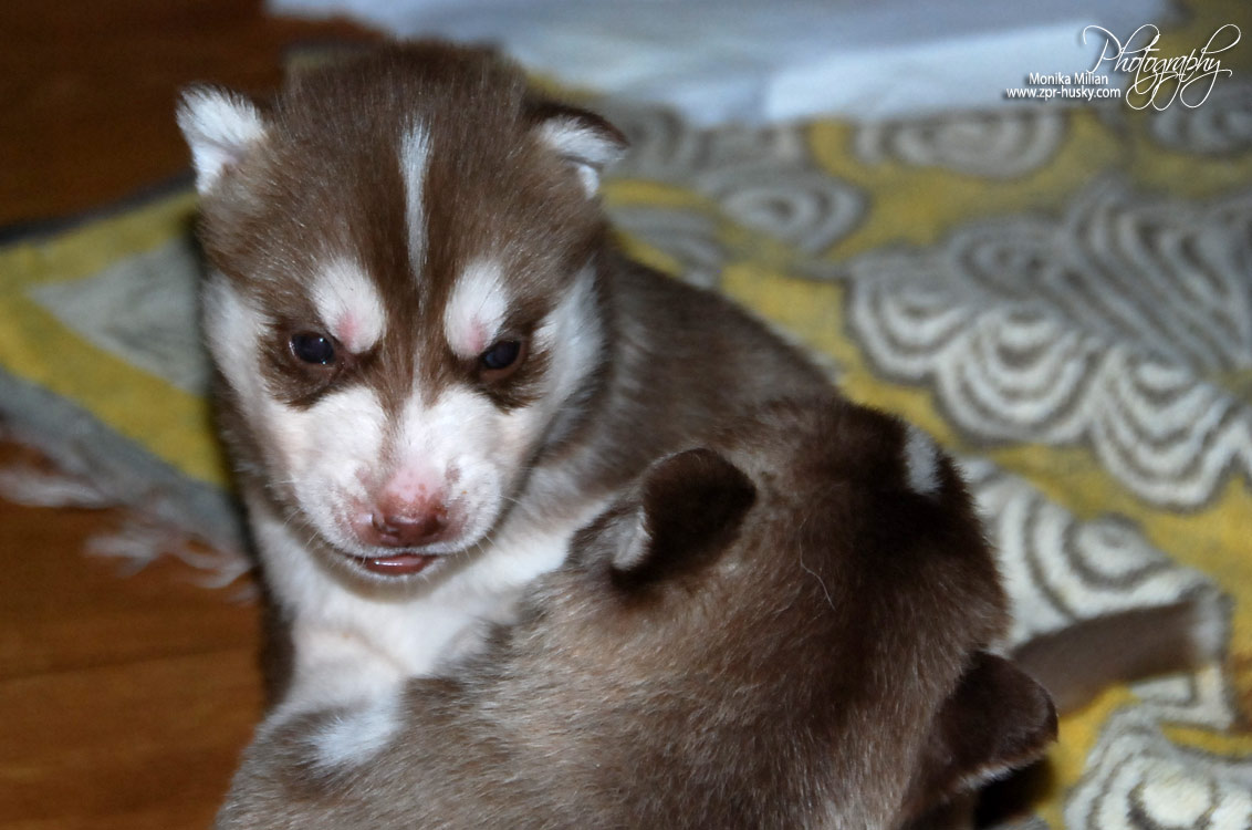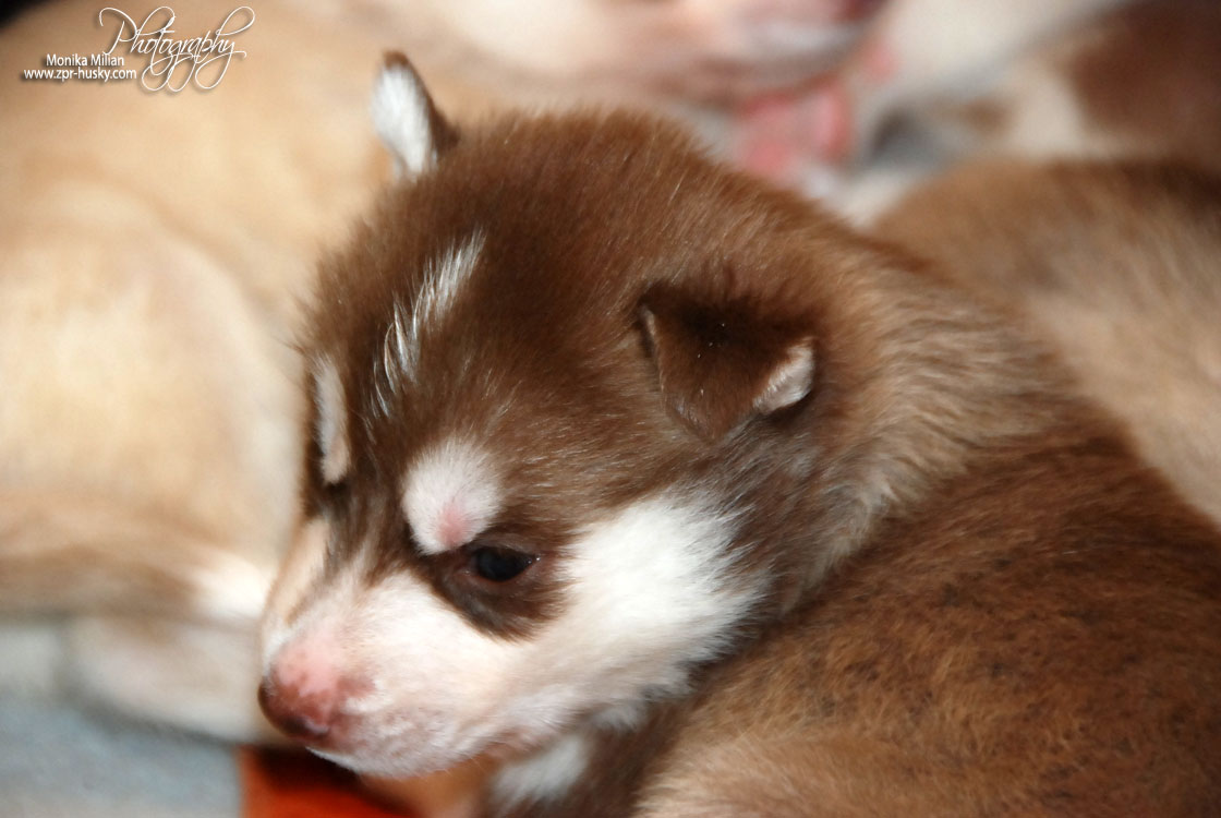 Suczka brązowo-biała / Brown and white female oczy ciemne / dark eyes